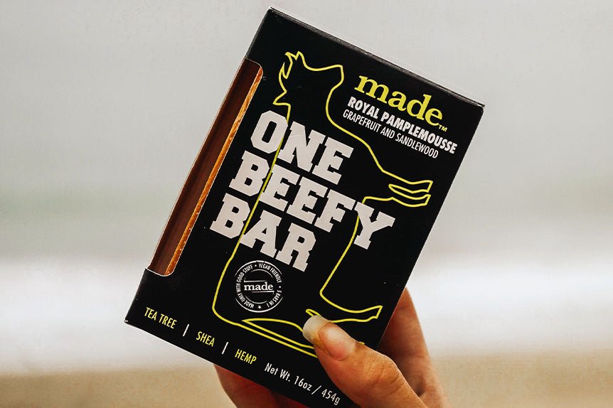 Meat and Potatoes bar. Royal Pampalmousse fragrance. Shampoo, body wash and shave soap fit for a king,
